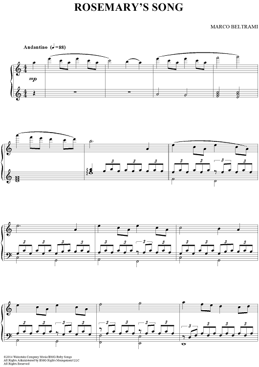 "Rosemary's Song" Sheet Music by Marco Beltrami