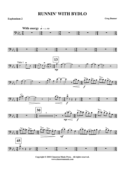"Runnin' with Bydlo - Euphonium 2 BC/TC" Sheet Music by Greg Danner
