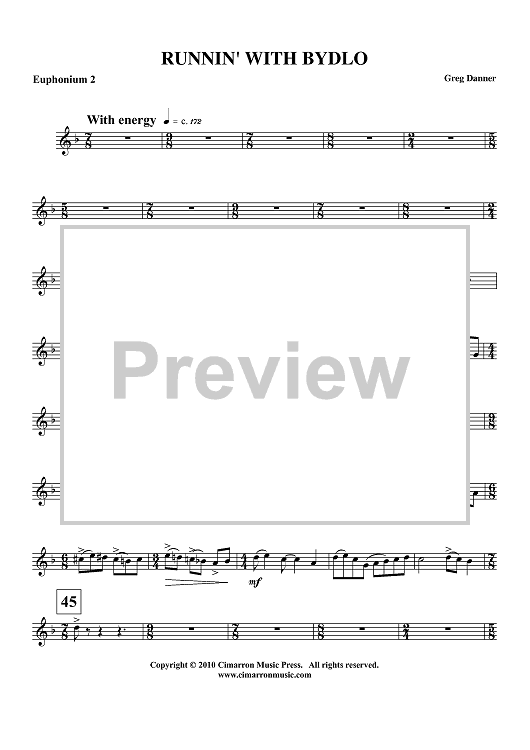 Digital Sheet Music for Runnin' with Bydlo - Euphonium 2 BC/TC by Greg Danner scored for Brass Ensemble; id:427035