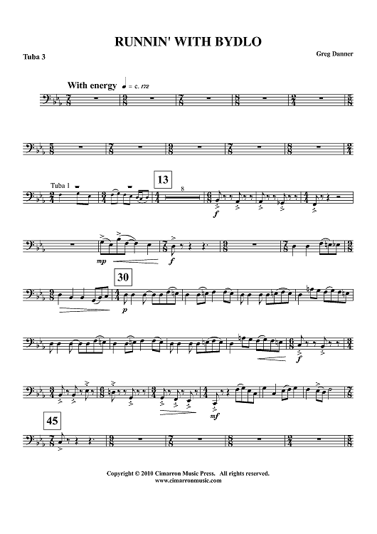 Digital Sheet Music for Runnin' with Bydlo - Tuba 3 by Greg Danner scored for Brass Ensemble; id:427040