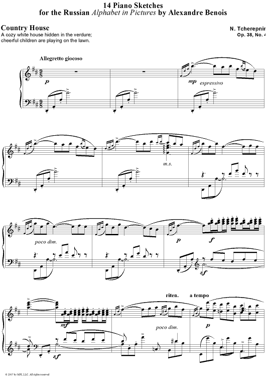 Digital Sheet Music for Russian Alphabet. 4. Country House by , Nicholas Tcherepnin scored for Piano Solo; id:364107