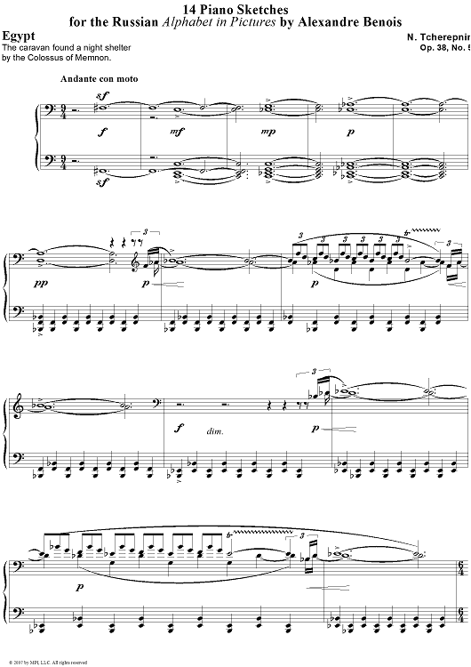 Digital Sheet Music for Russian Alphabet. 5. Egypt by , Nicholas Tcherepnin scored for Piano Solo; id:364108