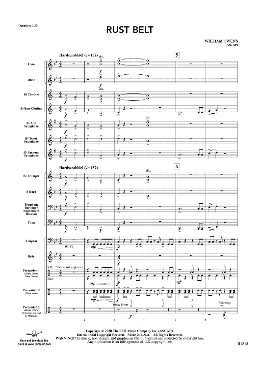 Digital Sheet Music for Rust Belt - Score by William Owens scored for Concert Band; id:471233