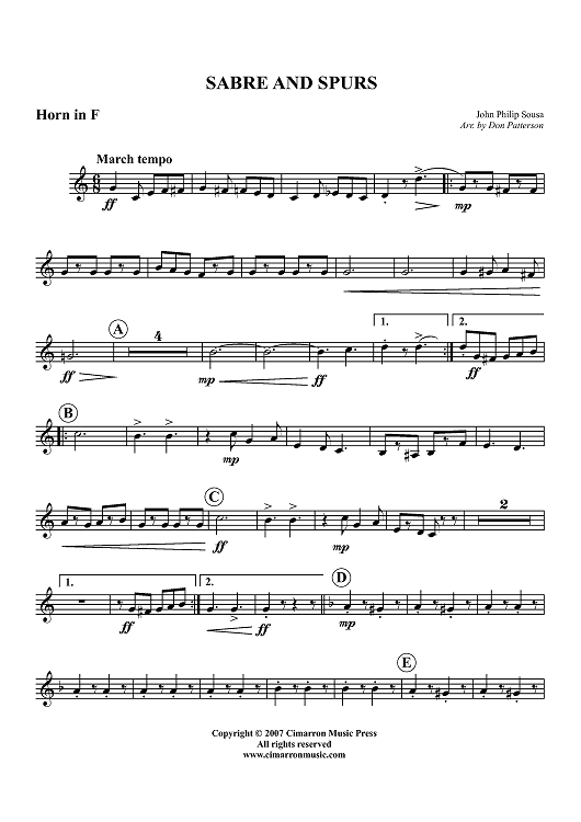 Digital Sheet Music for Sabre and Spurs - Horn in F by John Philip Sousa, Don Patterson scored for Brass Quintet; id:365598