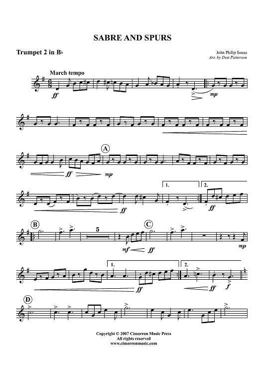 Digital Sheet Music for Sabre and Spurs - Trumpet 2 in B-flat by John Philip Sousa, Don Patterson scored for Brass Quintet; id:365597