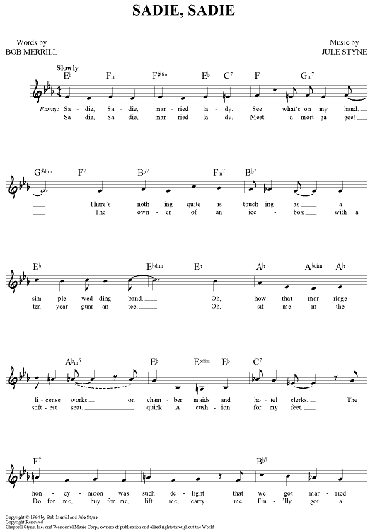 Digital Sheet Music for Sadie, Sadie by Jule Styne, Bob Merrill scored for Lead Sheet; id:444352