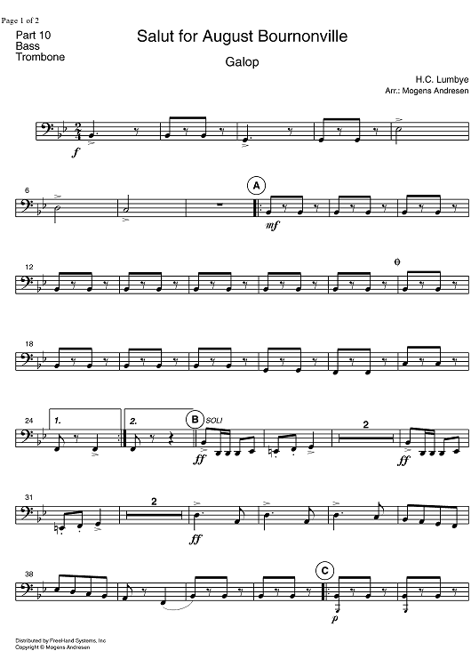 "Salut for August Bournonville - Bass Trombone" Sheet Music by Hans Lumbye