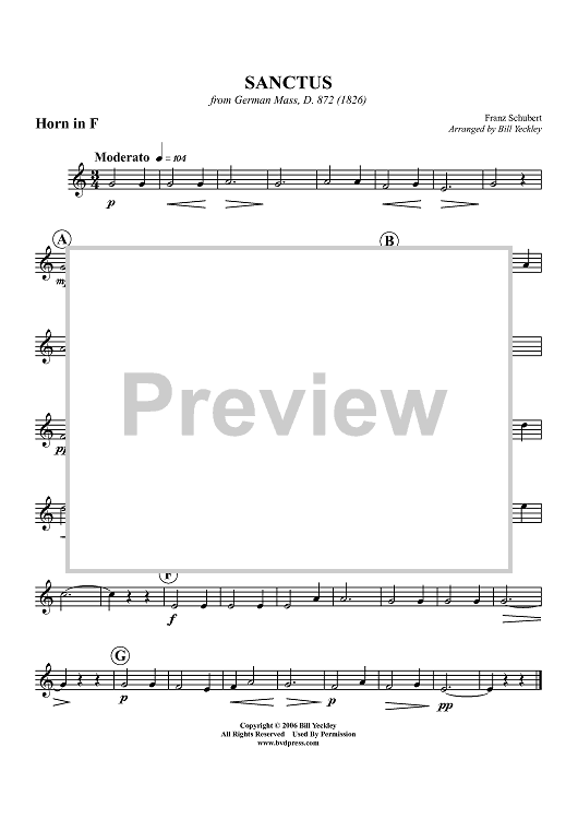 Digital Sheet Music for Sanctus - from German Mass, D. 872 (1826) - Horn in F by Franz Schubert, Bill Yeckley scored for Brass Quintet; id:428112