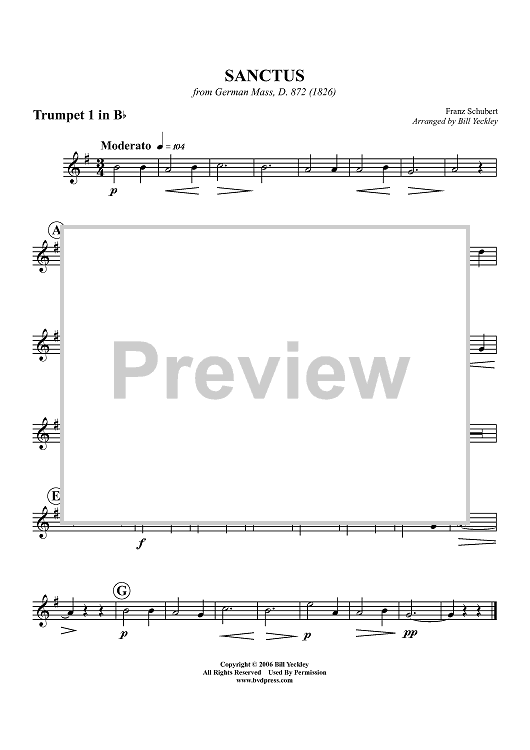 Digital Sheet Music for Sanctus - from German Mass, D. 872 (1826) - Trumpet 1 in Bb by Franz Schubert, Bill Yeckley scored for Brass Quintet; id:428110