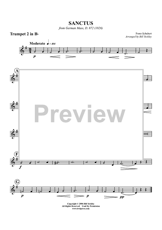 Digital Sheet Music for Sanctus - from German Mass, D. 872 (1826) - Trumpet 2 in Bb by Franz Schubert, Bill Yeckley scored for Brass Quintet; id:428111