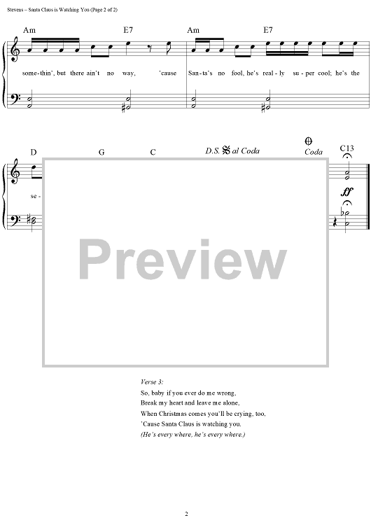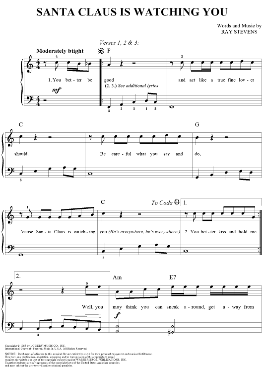Digital Sheet Music for Santa Claus is Watching You by Ray Stevens scored for Easy Piano/Vocal; id:259488