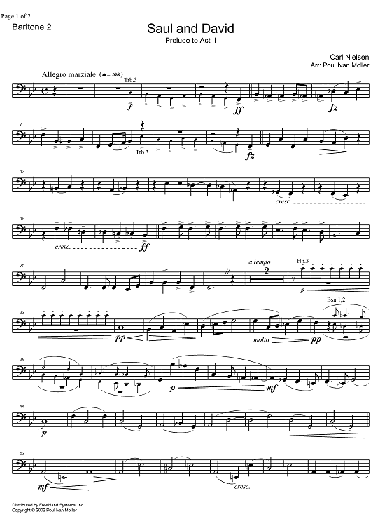 Digital Sheet Music for Saul and David - Prelude to Act 2 - Baritone Horn 2 by Poul Ivan Moller, Carl Nielsen scored for Concert Band; id:332088