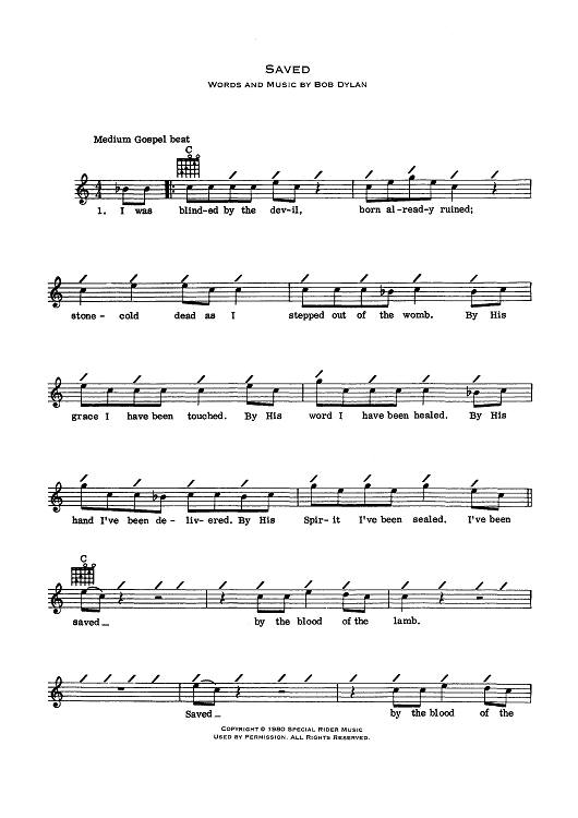 Digital Sheet Music for Saved by Bob Dylan scored for Lead Sheet; id:466308
