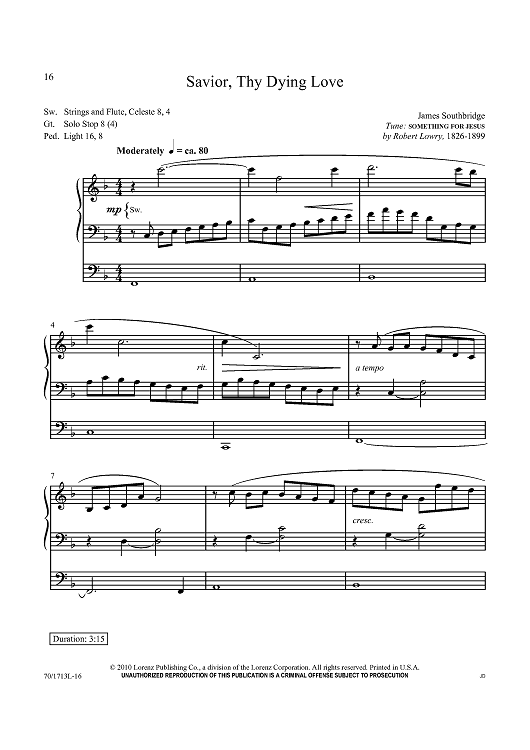 Digital Sheet Music for Savior, Thy Dying Love by Robert Lowry, James Southbridge scored for Organ Solo; id:434192