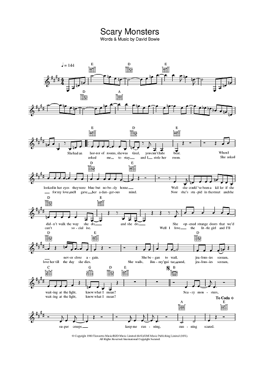 Digital Sheet Music for Scary Monsters by David Bowie scored for Lead Sheet; id:377922