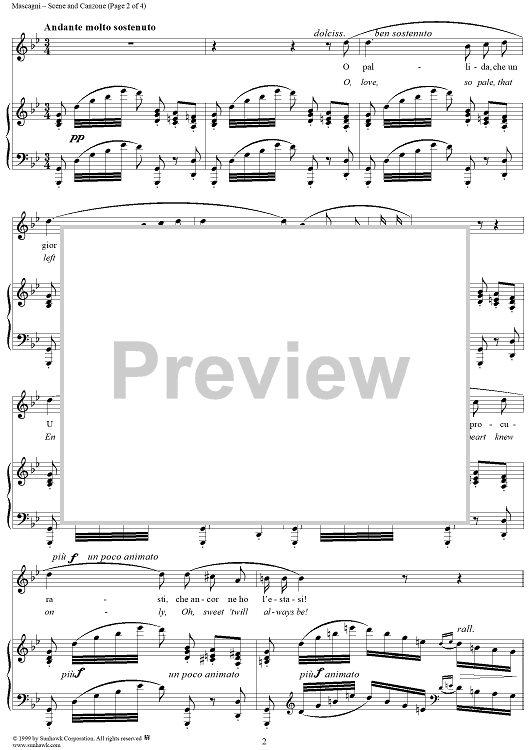 Digital Sheet Music for Scene and Canzone - From "L'Amico Fritz" by Pietro Mascagni scored for Voice/Piano; id:253582