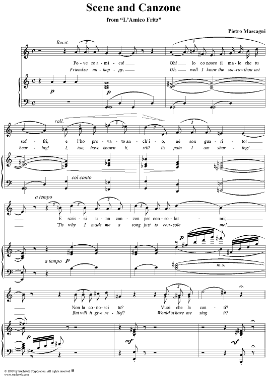 "Scene and Canzone - From "L'Amico Fritz"" Sheet Music by Pietro Mascagni