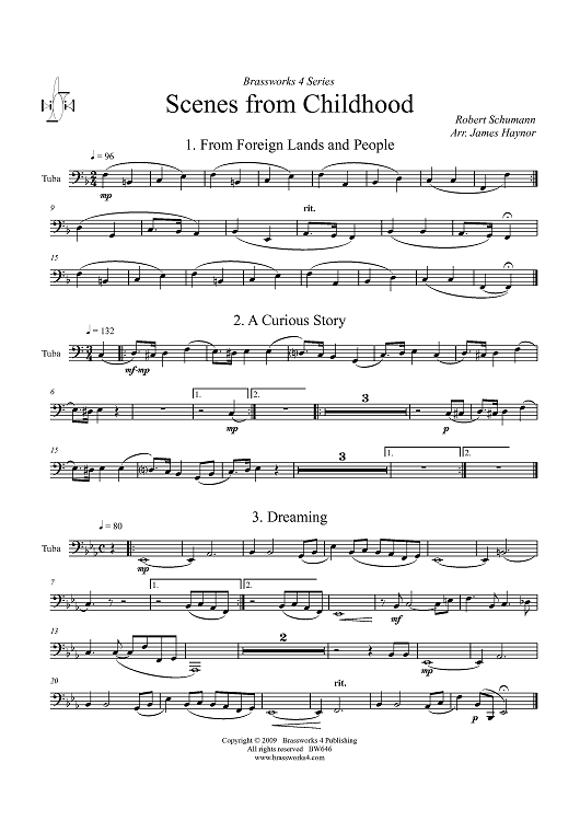 Digital Sheet Music for Scenes From Childhood - Tuba by Robert Schumann, James Haynor scored for Brass Quartet; id:411248