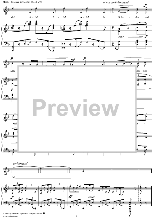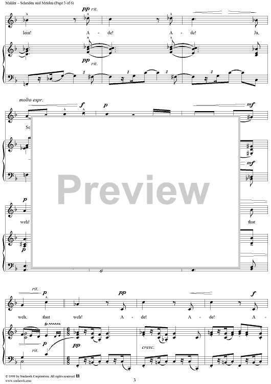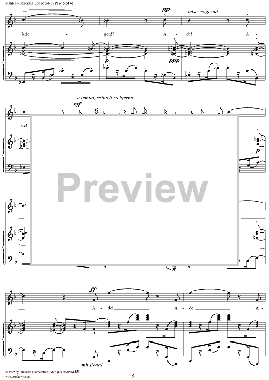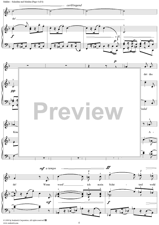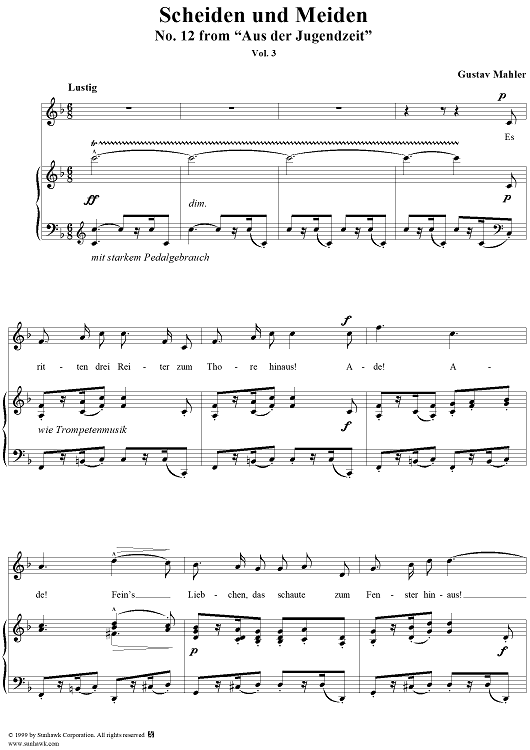 Digital Sheet Music for Scheiden und Meiden - No. 12 from "Aus der Jugendzeit" Vol. 3 by Gustav Mahler scored for Voice/Piano; id:251261