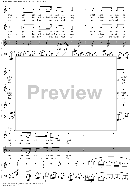 Digital Sheet Music for Schön Blümelein, Op. 43, No. 3 by Robert Reinick, Robert Schumann scored for Voice/Piano; id:318630