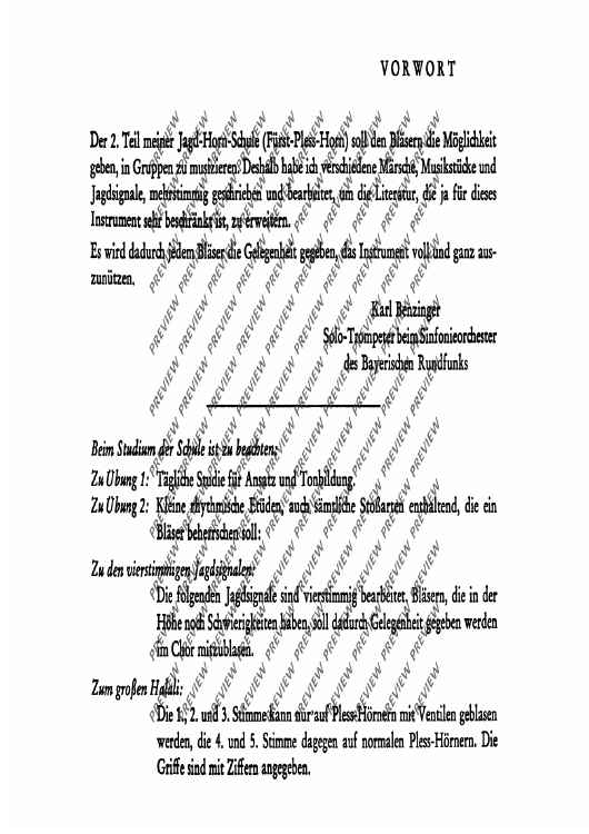 "Schule für Fürst-Pless-Horn" Sheet Music by Karl Benzinger