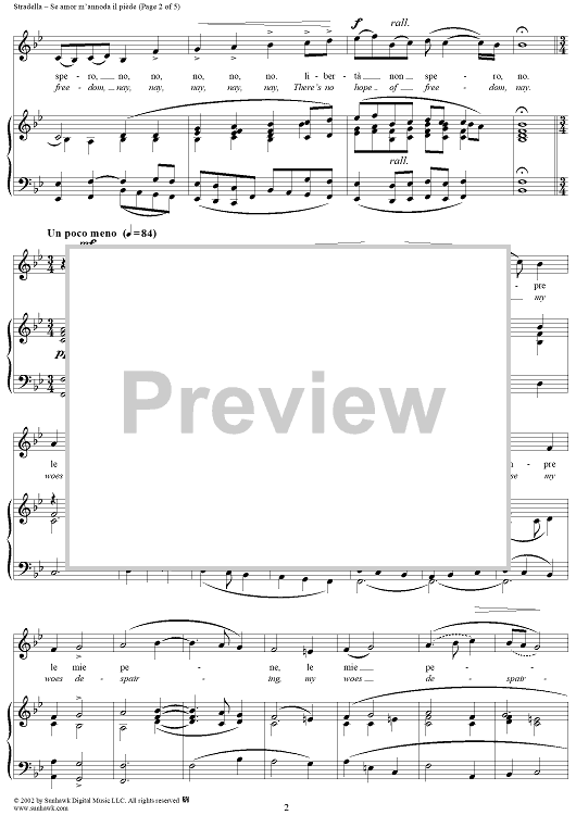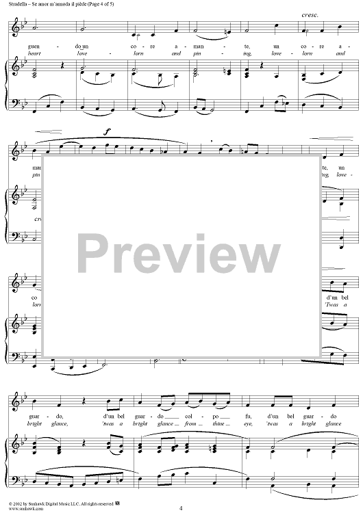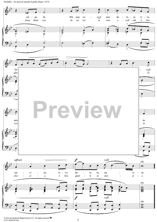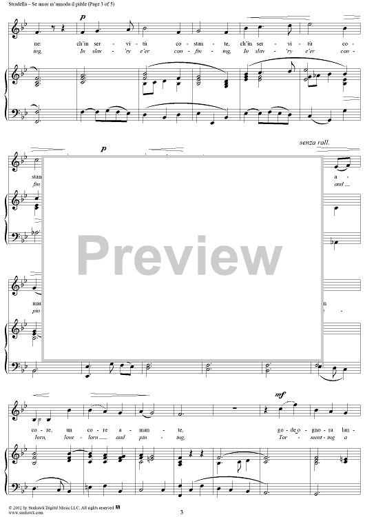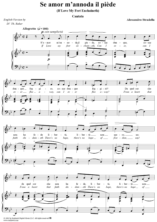 Digital Sheet Music for Se amor m'annoda il piède (If Love My Feet Enchaineth) by Alessandro Stradella scored for Voice/Piano; id:257664