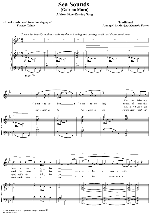 Digital Sheet Music for Sea Sounds, Gàir na Mara, A Slow Skye-Rowing Song by Marjory Kennedy-Fraser, Traditional scored for Piano/Vocal; id:262209