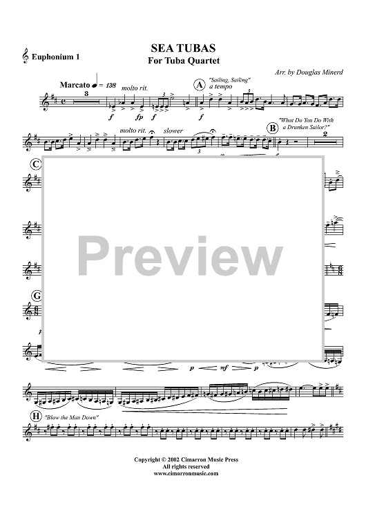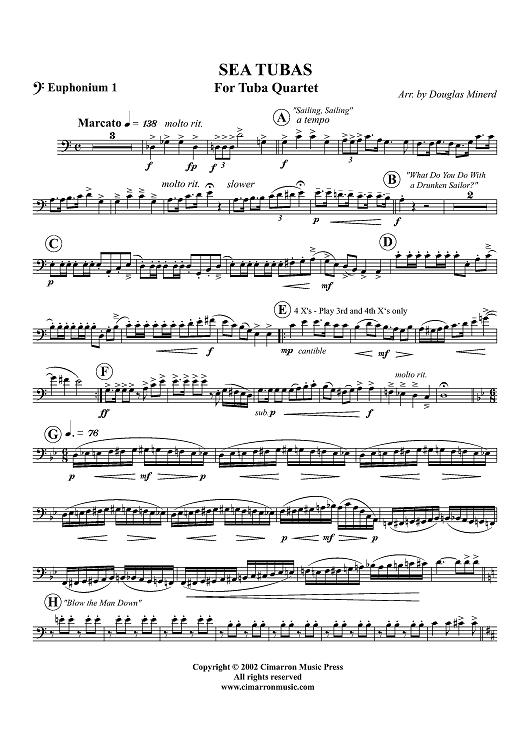 Digital Sheet Music for Sea Tubas - Traditional Nautical Songs - Euphonium 1 BC/TC by Various, Douglas Minerd scored for Tuba Quartet; id:312589