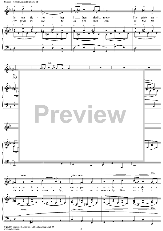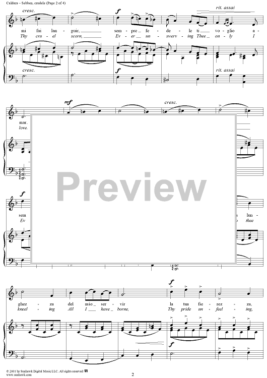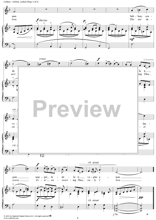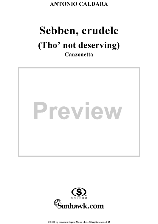 Digital Sheet Music for Sebben, crudele (Tho' Not Deserving) by Antonio Caldara scored for Voice/Piano; id:273375
