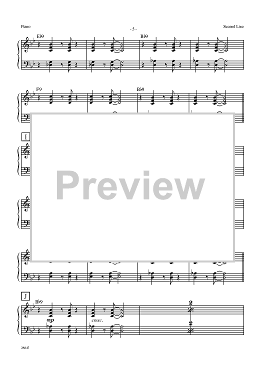 "Second Line (Joe Avery Blues) - Piano" Sheet Music by Traditional