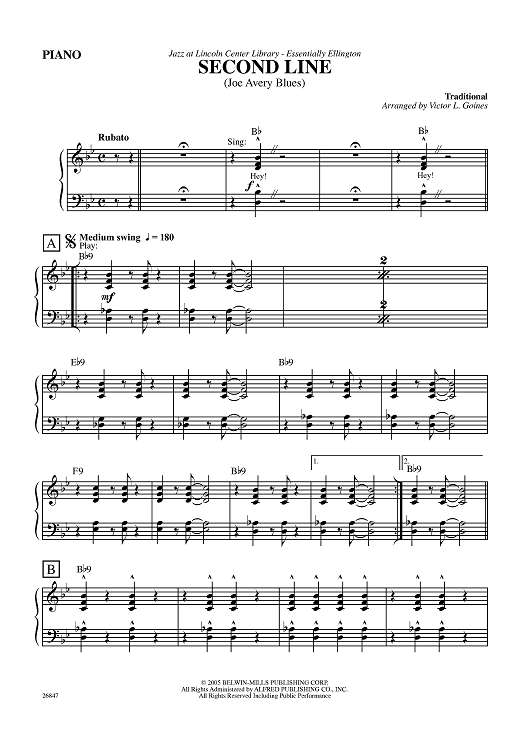 Digital Sheet Music for Second Line (Joe Avery Blues) - Piano by Traditional, Victor L. Goines scored for Jazz Ensemble; id:359828