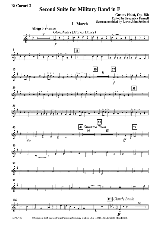 Digital Sheet Music for Second Suite in F - Bb Cornet 2 by Gustav Holst, Frederick Fennell scored for Concert Band; id:502928