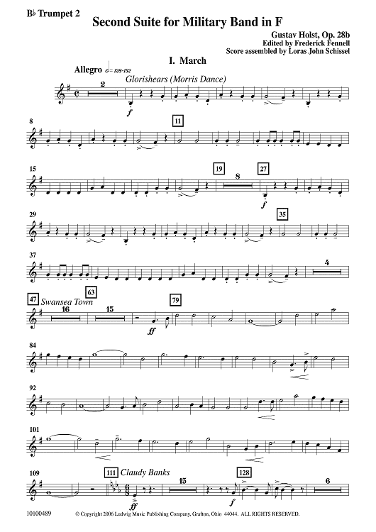 Digital Sheet Music for Second Suite in F - Bb Trumpet 2 by Gustav Holst, Frederick Fennell scored for Concert Band; id:502930
