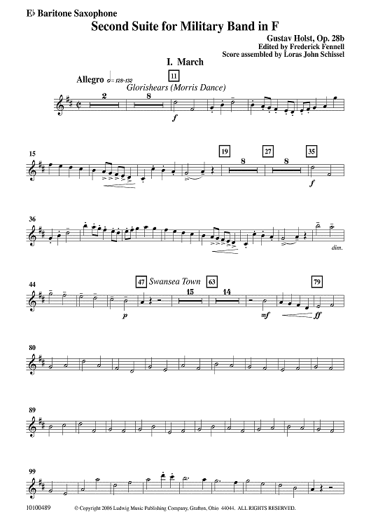 Digital Sheet Music for Second Suite in F - Eb Baritone Sax by Gustav Holst, Frederick Fennell scored for Concert Band; id:502926