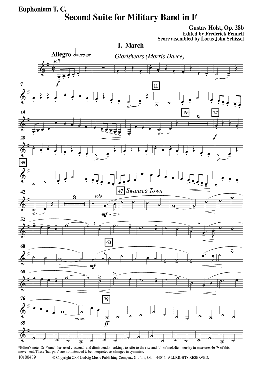 Digital Sheet Music for Second Suite in F - Euphonium TC by Gustav Holst, Frederick Fennell scored for Concert Band; id:502938