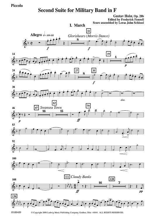 Digital Sheet Music for Second Suite in F - Piccolo by Gustav Holst, Frederick Fennell scored for Concert Band; id:502913