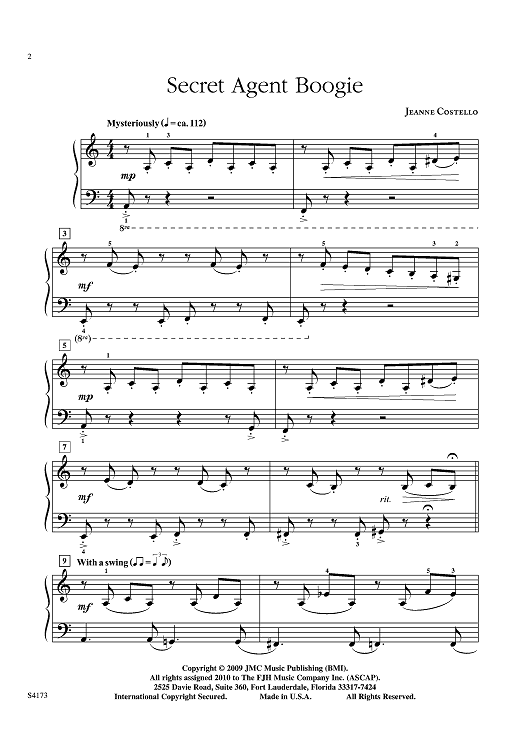 "Secret Agent Boogie" Sheet Music by Jeanne Costello