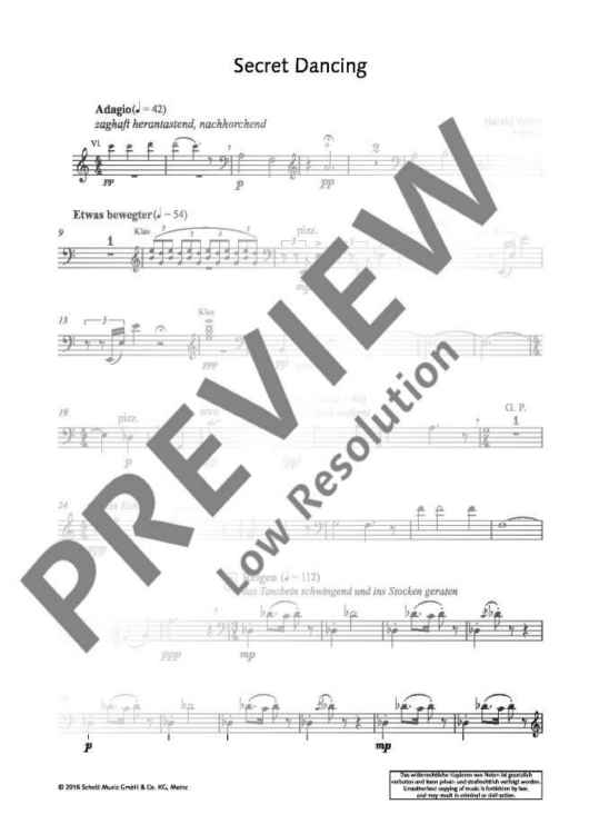 Digital Sheet Music for Secret Dancing - Score and Parts by Harald Weiss scored for Violin, Cello And Piano; id:490624