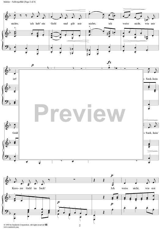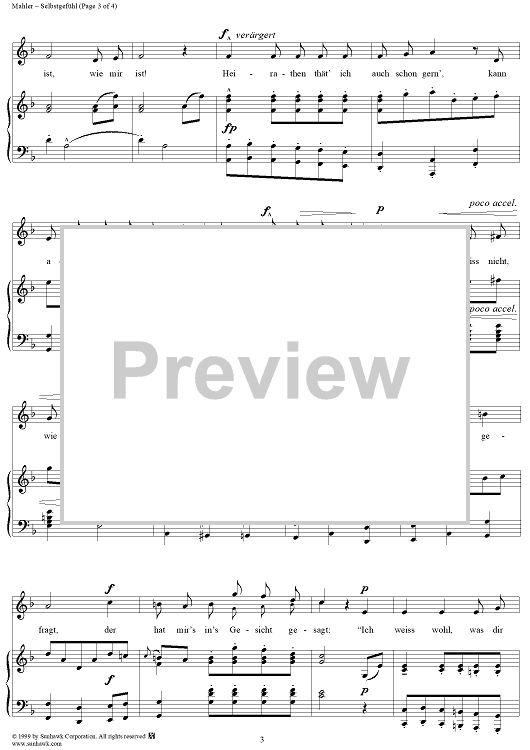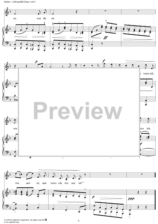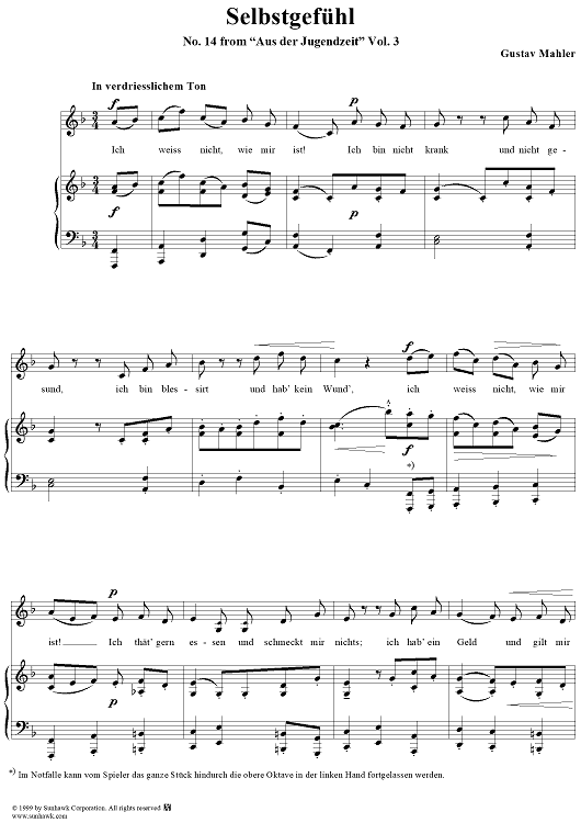 Digital Sheet Music for Selbstgefühl - No. 14 from "Aus der Jugendzeit" Vol. 3 by Gustav Mahler scored for Voice/Piano; id:259995