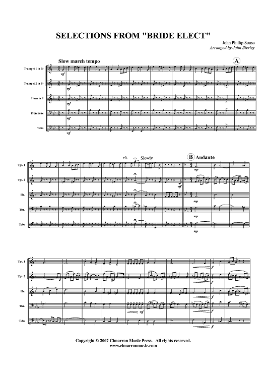 Digital Sheet Music for Selections from "Bride Elect" - Score by John Philip Sousa, John Bierley scored for Brass Quintet; id:417598