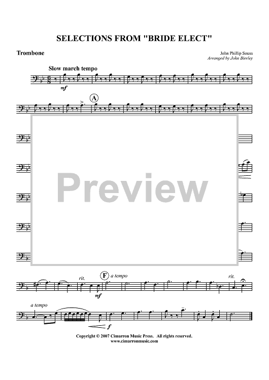 Digital Sheet Music for Selections from "Bride Elect" - Trombone by John Philip Sousa, John Bierley scored for Brass Quintet; id:417602