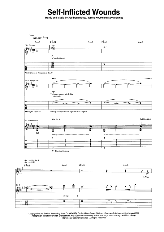 "Self-Inflicted Wounds" Sheet Music by Joe Bonamassa