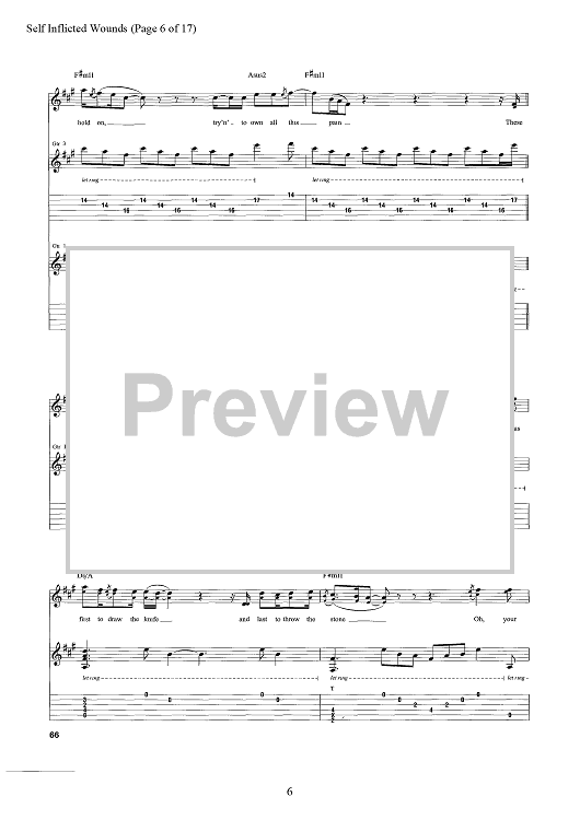 Digital Sheet Music for Self-Inflicted Wounds by James House, Joe Bonamassa, Kevin Shirley scored for Guitar Tab/Vocal/Chords; id:466931