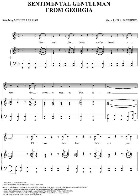 Digital Sheet Music for Sentimental Gentleman From Georgia by Mitchell Parish, Frank Perkins scored for Piano/Vocal; id:254622