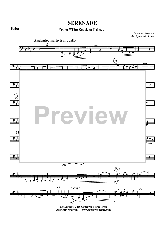 Digital Sheet Music for Serenade - From "The Student Prince" - Tuba by Sigmund Romberg, David Werden scored for Tuba/Piano; id:427948