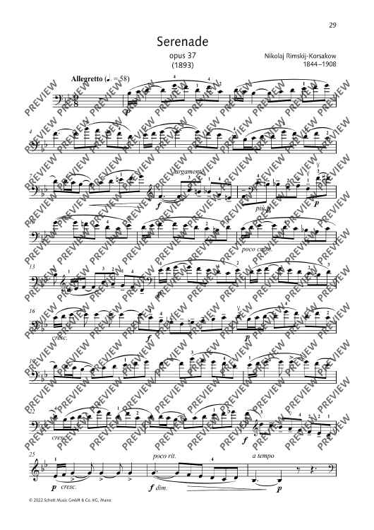 Digital Sheet Music for Sérénade by Nikolai Rimsky-Korsakov scored for Cello And Piano; id:497719