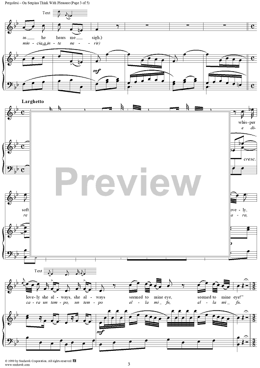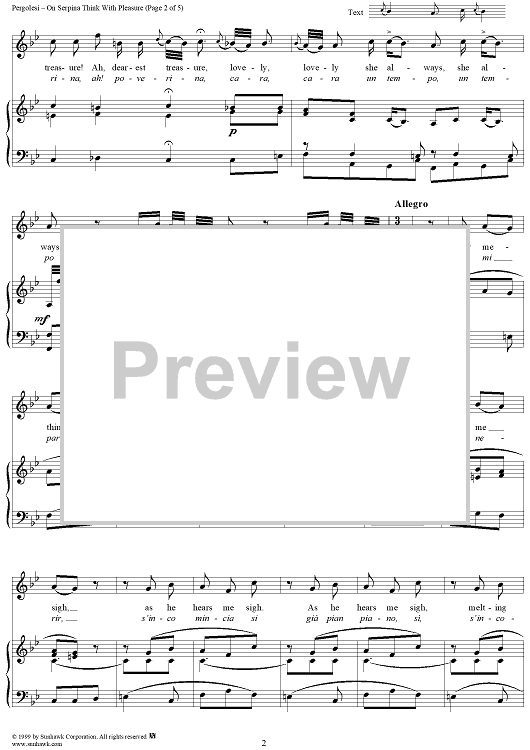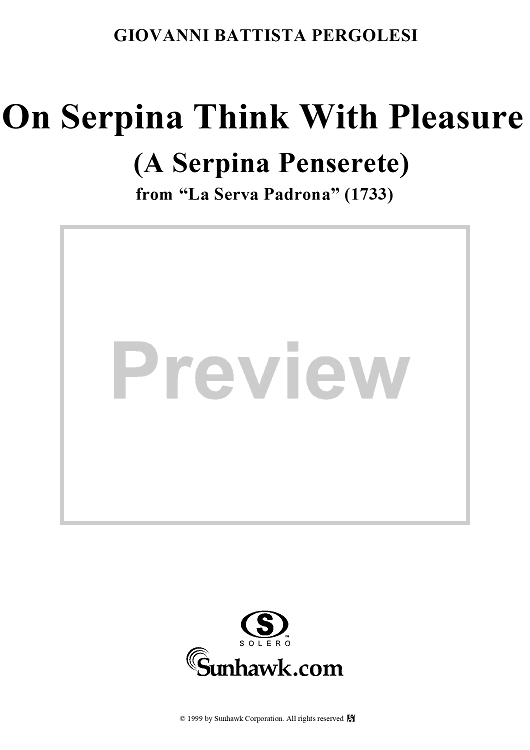 Digital Sheet Music for Serva Padrona, A Serpina penserette, (On Serpina think with pleasure) by Giovanni Battista Pergolesi scored for Voice/Piano; id:253642