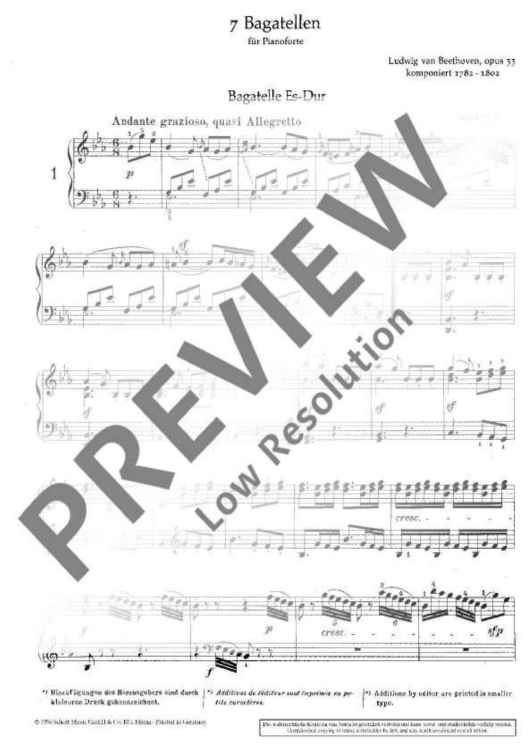 Digital Sheet Music for Seven Bagatelles by Ludwig van Beethoven scored for Piano; id:474601