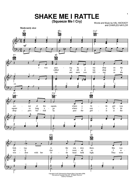 Digital Sheet Music for Shake Me I Rattle (Squeeze Me I Cry) by Hal Hackady, Charles Naylor scored for Piano/Vocal/Chords; id:375075