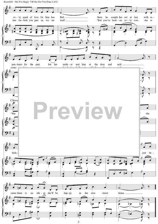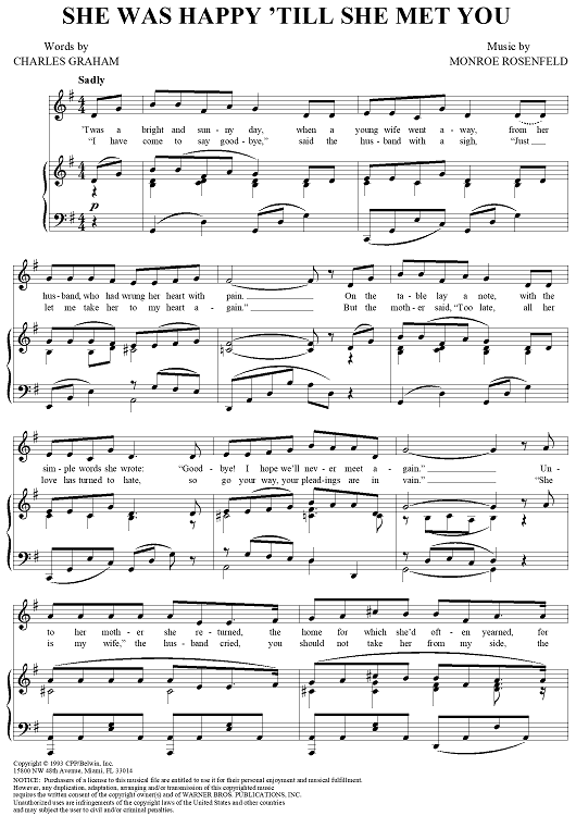 Digital Sheet Music for She Was Happy 'Till She Met You by Monroe H. Rosenfeld, Charles Graham scored for Piano/Vocal; id:255934